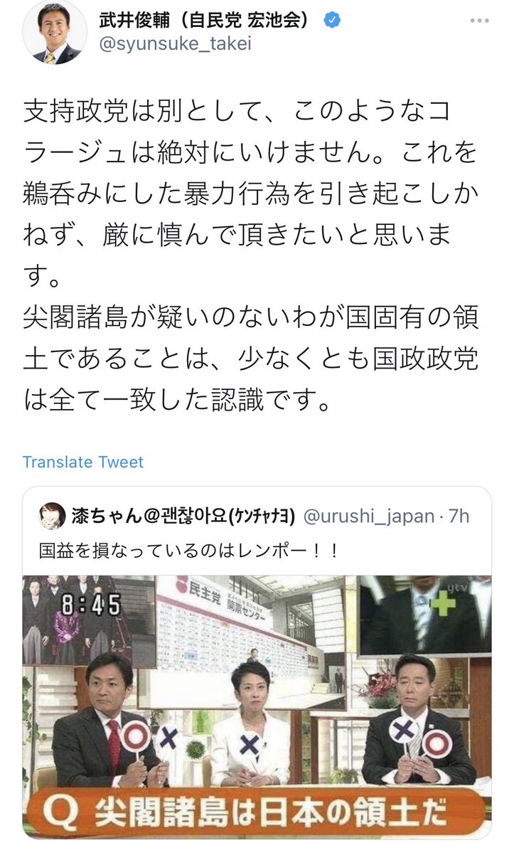 支持政党は別として、このようなコラージュは絶対にいけません。これを鵜呑みにした暴力行為を引き起こしかねず、厳に慎んで頂きたいと思います。