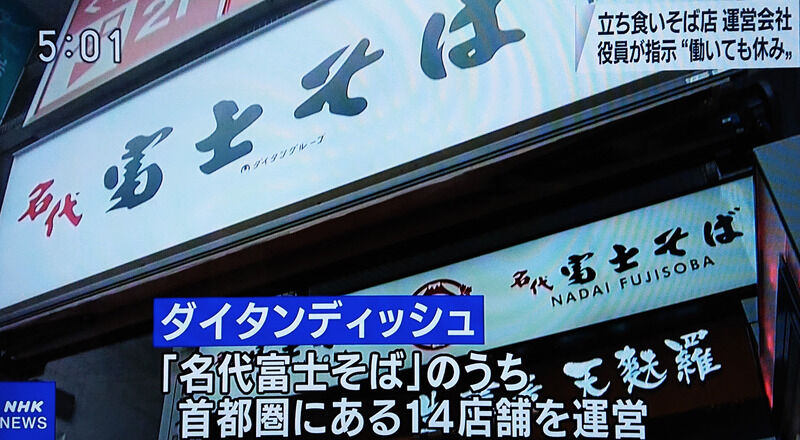 立ち食いそば店「名代富士そば」を展開するダイタングループの店舗運営会社が、未払い残業代の支払いなどを求めて会社側と対立している「富士そば労働組合」の委員長と書記長の幹部2人を1月29日付で懲戒解雇したことがわかった。