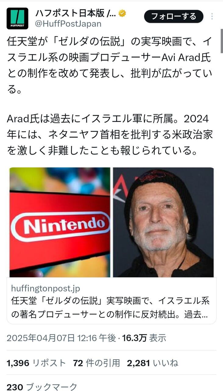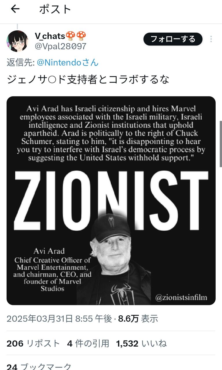 制作発表(2023)より前からAviAradが作る事は決まってたからそこは仕方ないけどイスラエル支持の企業や人がボイコットされまくってる今「AviAradさんと制作します」なんて声高々と宣言したらそりゃ燃えるわ