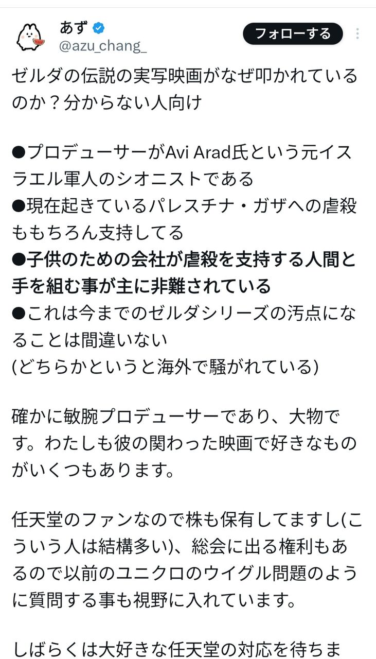 つまり、子供も数多く犠牲になっている攻撃を支持する人物が、今回任天堂タイトルの映画を制作するということに。