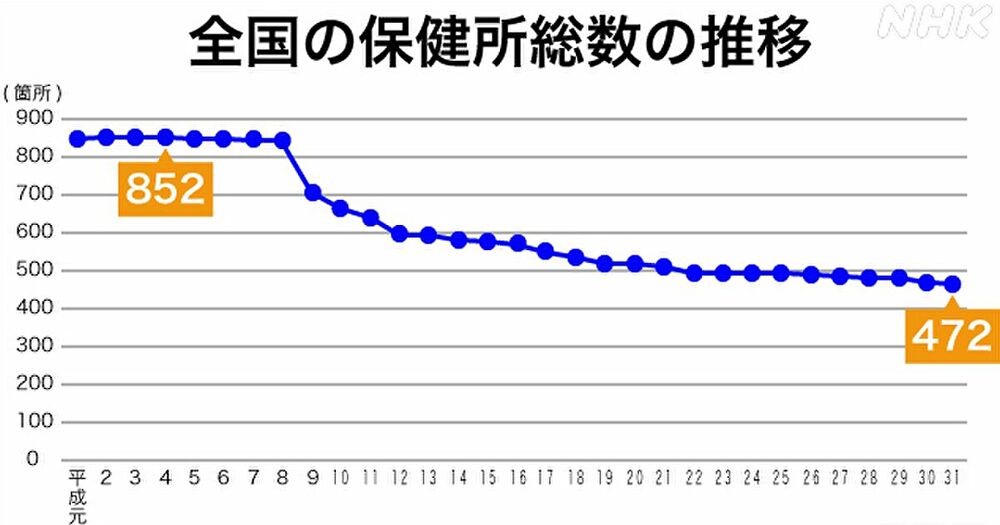 都道府県や政令指定都市、中核市などが運営する保健所は全国に469(支所をのぞく)あり、うち東京23区には23ある。ただ、行革の一環などで保健所数はこの30年で300以上減った。予算や人員も抑えられ、新型コロナウイルスの感染拡大への対応が難しくなっている。
